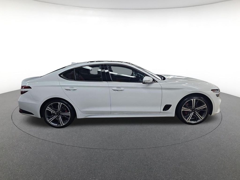 Sport Prestige Package (12-Way Power Front Passenger Seat, Acoustic Front Door Glass, Alloy Pedals, Dark Chrome Grille & Daylight Opening Trim, Forward & Reverse Parking Distance Warning, Front Passenger Seat Walk-In Device, Integrated Memory System (IMS), Leather Seating Surfaces, Option Group 02, Power Folding ECM Outside Mirrors, Power Telescoping Steering Wheel, Radio: AM/FM/SiriusXM/HD Lexicon Prem Audio System, Rain-Sensing Wipers, Sport Aluminum Trim, Ventilated Front Seats, Wheels: 19" x 8.0J Fr & 19" x 8.5J Rr Sport Alloy, Wide Sunroof, and Wireless Phone Charger), Balance of Factory Warranty, 4-Wheel Disc Brakes, 6 Speakers, ABS brakes, Air Conditioning, Alloy wheels, AM/FM radio: SiriusXM, Android Auto & Apple CarPlay, Anti-whiplash front head restraints, Auto High-beam Headlights, Auto-dimming Rear-View mirror, Automatic temperature control, Brake assist, Bumpers: body-color, Delay-off headlights, Driver door bin, Driver vanity mirror, Dual front impact airbags, Dual front side impact airbags, Electronic Stability Control, Emergency communication system: Genesis Connected Services, Exterior Parking Camera Rear, First Aid Kit, Four wheel independent suspension, Front anti-roll bar, Front Bucket Seats, Front Center Armrest, Front dual zone A/C, Front reading lights, Fully automatic headlights, Garage door transmitter: HomeLink, Heated door mirrors, Heated front seats, Heated Multi-Adjustable Front Bucket Seats, Illuminated entry, Knee airbag, Leather steering wheel, Leatherette Seating Surfaces, Low tire pressure warning, Navigation System, Occupant sensing airbag, Outside temperature display, Overhead airbag, Overhead console, Panic alarm, Passenger door bin, Passenger vanity mirror, Power door mirrors, Power driver seat, Power passenger seat, Power steering, Power windows, Radio: AM/FM/SiriusXM/HD Audio System, Rear anti-roll bar, Rear reading lights, Rear seat center armrest, Rear side impact airbag, Rear window defroster, Remote keyless entry, Reversible Cargo Tray, Roadside Assistance, Security system, Speed control, Speed-Sensitive Wipers, Split folding rear seat, Steering wheel mounted audio controls, Tachometer, Telescoping steering wheel, Traction control, Trip computer, Turn signal indicator mirrors, Variably intermittent wipers, and Wheels: 19" x 8.0J Fr & 19" x 8.5J Rr Alloy.