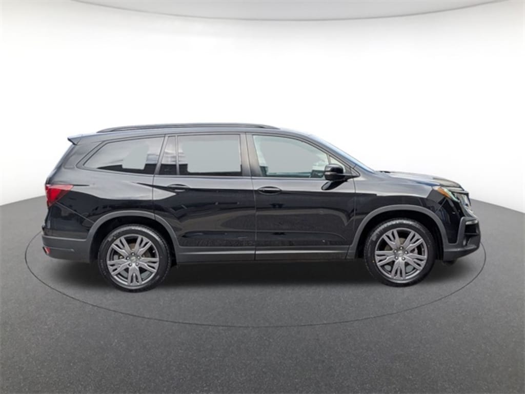AWD, 3rd row seats: split-bench, 4-Wheel Disc Brakes, 4.33 Axle Ratio, 7 Speakers, A/V remote: CabinControl, ABS brakes, Air Conditioning, Alloy wheels, AM/FM radio: SiriusXM, Apple CarPlay/Android Auto, Auto High-beam Headlights, Automatic temperature control, Blind Spot Information (BSI) System warning, Brake assist, Bumpers: body-color, Cloth Seat Trim, Delay-off headlights, Driver door bin, Driver vanity mirror, Dual front impact airbags, Dual front side impact airbags, Electronic Stability Control, Emergency communication system: HondaLink Assist, Exterior Parking Camera Rear, Forward collision: Collision Mitigation Braking System (CMBS) + FCW mitigation, Four wheel independent suspension, Front anti-roll bar, Front Bucket Seats, Front Center Armrest, Front dual zone A/C, Front fog lights, Front reading lights, Fully automatic headlights, Heated door mirrors, Heated Front Bucket Seats, Heated front seats, Illuminated entry, Lane departure: Lane Keeping Assist System (LKAS) active, Low tire pressure warning, Occupant sensing airbag, Outside temperature display, Overhead airbag, Overhead console, Panic alarm, Passenger door bin, Passenger vanity mirror, Power door mirrors, Power driver seat, Power steering, Power windows, Radio data system, Radio: 215-Watt Audio System, Rear air conditioning, Rear anti-roll bar, Rear reading lights, Rear seat center armrest, Rear window defroster, Rear window wiper, Reclining 3rd row seat, Remote keyless entry, Roof rack: rails only, Security system, Speed control, Speed-sensing steering, Speed-Sensitive Wipers, Split folding rear seat, Spoiler, Steering wheel mounted audio controls, Tachometer, Telescoping steering wheel, Tilt steering wheel, Traction control, Trip computer, Turn signal indicator mirrors, Variably intermittent wipers, and Wheels: 20" Pewter Gray Alloy.