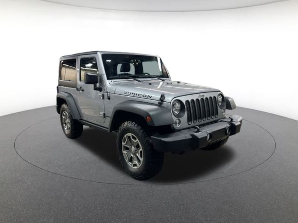 Power Convenience Group (Auto-Dimming Mirror w/Reading Lamp, Front 1-Touch Down Power Windows, Power Heated Mirrors, Power Locks, Remote Keyless Entry, and Security Alarm), Quick Order Package 24R, Trailer Tow Group (Class II Receiver Hitch and Trailer Tow w/4-Pin Connector Wiring), Wrangler Rubicon, 2D Sport Utility, 3.6L V6 24V VVT, 5-Speed Automatic, 4WD, Billet Silver Metallic Clearcoat, Black Cloth, Body Color 3-Piece Hard Top, Freedom Panel Storage Bag, Rear Window Defroster, Rear Window Wiper/Washer, 17" x 7.5" Polished Mineral Gray Wheels, 3.73 Rear Axle Ratio, 4-Wheel Disc Brakes, 8 Speakers, ABS brakes, Air Conditioning, Alloy wheels, AM/FM radio: SiriusXM, Audio Jack Input for Mobile Devices, Black 3-Piece Hard Top, Brake assist, CD Stereo, Cloth Seats w/Adjustable Head Restraints, Compass, Deep Tint Sunscreen Windows, Delete Sunrider Soft Top, Driver door bin, Driver vanity mirror, Dual front impact airbags, Electronic Stability Control, Front anti-roll bar, Front Bucket Seats, Front Center Armrest w/Storage, Front fog lights, Fully automatic headlights, Integrated roll-over protection, Leather steering wheel, Leather Wrapped Steering Wheel, Low tire pressure warning, Manufacturer's Statement of Origin, Occupant sensing airbag, Outside temperature display, Passenger door bin, Passenger vanity mirror, Performance Suspension, Power steering, Radio data system, Radio: 130, Rear anti-roll bar, Speed control, Steering wheel mounted audio controls, Tachometer, Tilt steering wheel, Tinted Rear Quarter & Liftgate Windows, Traction control, Trip computer, and Variably intermittent wipers.