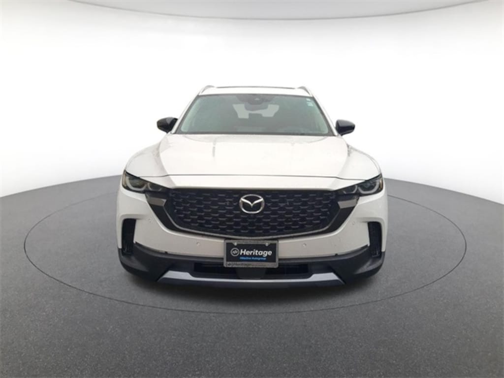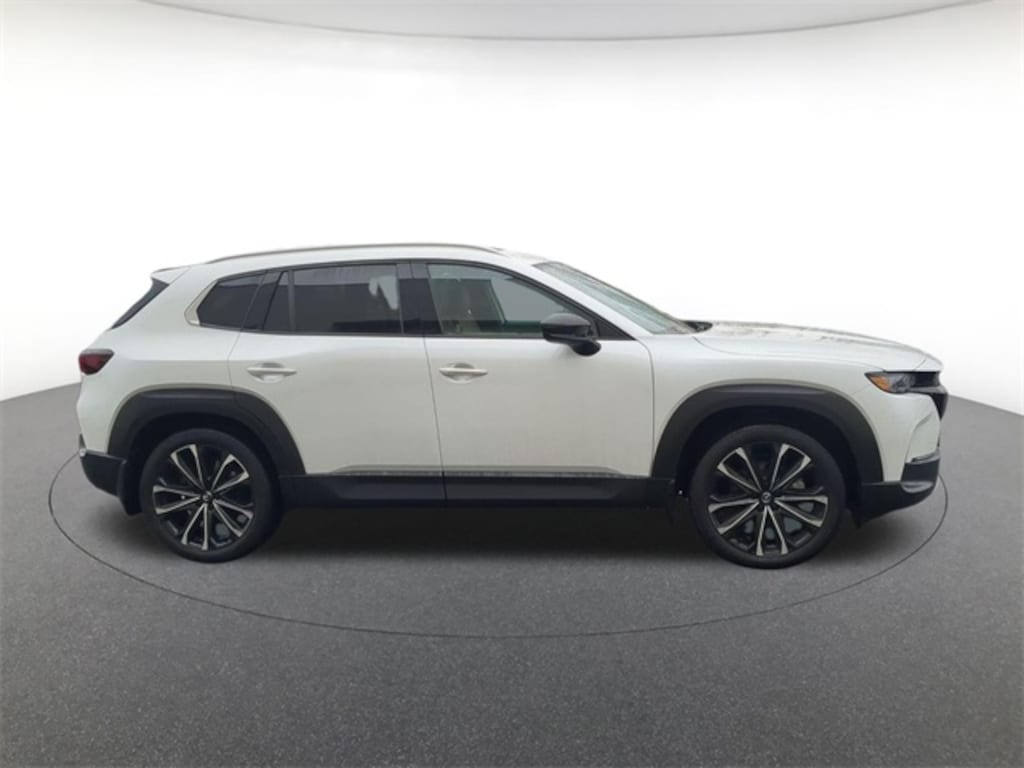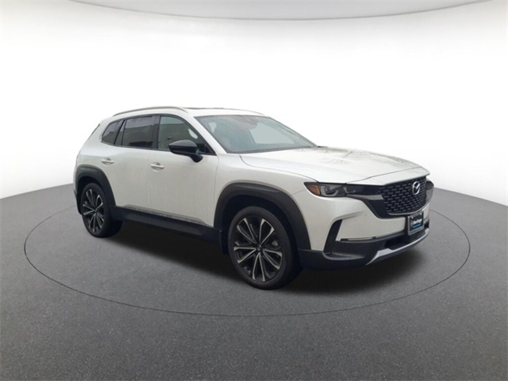 Cargo Package (Cargo Blocks), 12 Speakers, 20" x 8J Aluminum Alloy Wheels, 3.841 Axle Ratio, 4-Wheel Disc Brakes, ABS brakes, Air Conditioning, Alloy wheels, AM/FM radio: SiriusXM, AppLink/Apple CarPlay and Android Auto, Auto High-beam Headlights, Auto-dimming door mirrors, Auto-dimming Rear-View mirror, Automatic temperature control, Black Lug Nuts & Black Wheel Locks, Brake assist, Bumpers: body-color, Compass, Delay-off headlights, Driver door bin, Driver vanity mirror, Dual front impact airbags, Dual front side impact airbags, Electronic Stability Control, Emergency communication system: MAZDA CONNECT, Front & Rear Splash Guards, Front anti-roll bar, Front Bucket Seats, Front Center Armrest, Front dual zone A/C, Front reading lights, Front wheel independent suspension, Fully automatic headlights, Garage door transmitter: HomeLink, Heads-Up Display, Heated & Ventilated Front Bucket Seats, Heated door mirrors, Heated front seats, Heated rear seats, Heated steering wheel, Illuminated entry, Knee airbag, Leather Seat Trim, Leather Shift Knob, Leather steering wheel, Low tire pressure warning, Memory seat, Navigation system: MAZDA CONNECT, Occupant sensing airbag, Outside temperature display, Overhead airbag, Overhead console, Panic alarm, Passenger door bin, Passenger vanity mirror, Power door mirrors, Power driver seat, Power Liftgate, Power moonroof, Power passenger seat, Power steering, Power windows, Radio data system, Radio: AM/FM/HD Audio System, Rain sensing wipers, Rear seat center armrest, Rear window defroster, Rear window wiper, Remote keyless entry, Speed control, Speed-sensing steering, Split folding rear seat, Spoiler, Steering wheel mounted audio controls, Tachometer, Telescoping steering wheel, Tilt steering wheel, Traction control, Trip computer, Turn signal indicator mirrors, Variably intermittent wipers, Ventilated front seats, and Wind Chill Pearl Paint Charge.