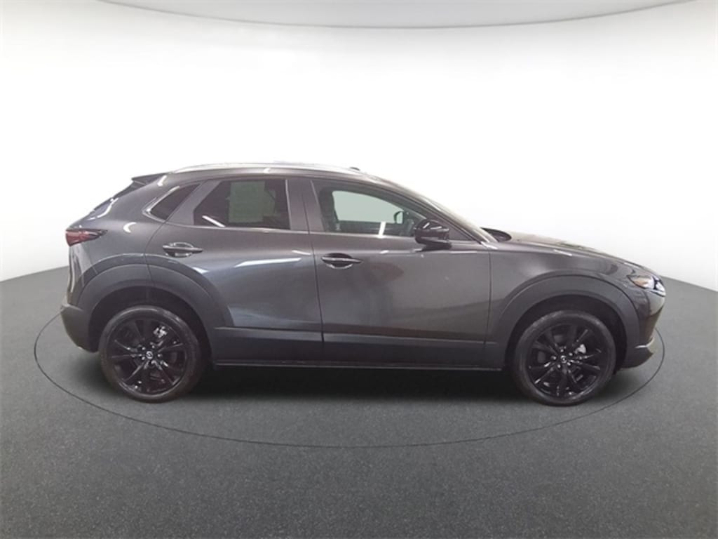 Balance of Factory Warranty, 4-Wheel Disc Brakes, 6 Speakers, ABS brakes, Air Conditioning, Alloy wheels, AM/FM radio, AppLink/Apple CarPlay and Android Auto, Auto High-beam Headlights, Automatic temperature control, Brake assist, Bumpers: body-color, Compass, Delay-off headlights, Driver door bin, Driver vanity mirror, Dual front impact airbags, Dual front side impact airbags, Electronic Stability Control, Emergency communication system: Mazda Connected Services (3-year trial subscription included), Exterior Parking Camera Rear, Front anti-roll bar, Front Bucket Seats, Front Center Armrest, Front dual zone A/C, Front reading lights, Front wheel independent suspension, Fully automatic headlights, Heated door mirrors, Illuminated entry, Knee airbag, Leather Shift Knob, Leather steering wheel, Leatherette Seat Trim, Low tire pressure warning, Machine Gray Metallic Paint Charge, MAZDA CONNECT Infotainment System, Occupant sensing airbag, Outside temperature display, Overhead airbag, Overhead console, Panic alarm, Passenger door bin, Passenger vanity mirror, Power door mirrors, Power steering, Power windows, Radio data system, Radio: AM/FM Audio System, Rain sensing wipers, Rear seat center armrest, Rear side impact airbag, Rear window defroster, Rear window wiper, Remote keyless entry, Speed control, Speed-sensing steering, Split folding rear seat, Spoiler, Steering wheel mounted audio controls, Tachometer, Telescoping steering wheel, Tilt steering wheel, Traction control, Trip computer, Turn signal indicator mirrors, Variably intermittent wipers, and Wheels: 18" x 7J Aluminum Alloy.